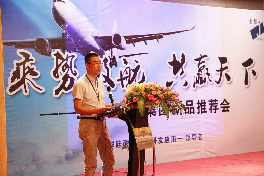 下午16:00,推介會正式開始。金強集團總裁翁斌首先闡述了金強最新的發展戰略和企業定位。2014年起,金強集團制訂了打造住宅工業化產業集群的戰略目標,完成了集團化布局,明晰了集團下屬各企業的角色定位。金強科技是專注于新型綠色墻材的研發、生產及售后服務的綜合型企業。今后,金強將逐漸脫離銷售一線,銷售將更多地交給經銷商完成,金強苦練內功,專注于提供優質的服務,全力打造一個高效全面的生產、服務平臺,為經銷商的發展、升級提供全方位的幫助,幫助經銷商做大做強,從產品銷售商向工程項目系統供應商轉變。