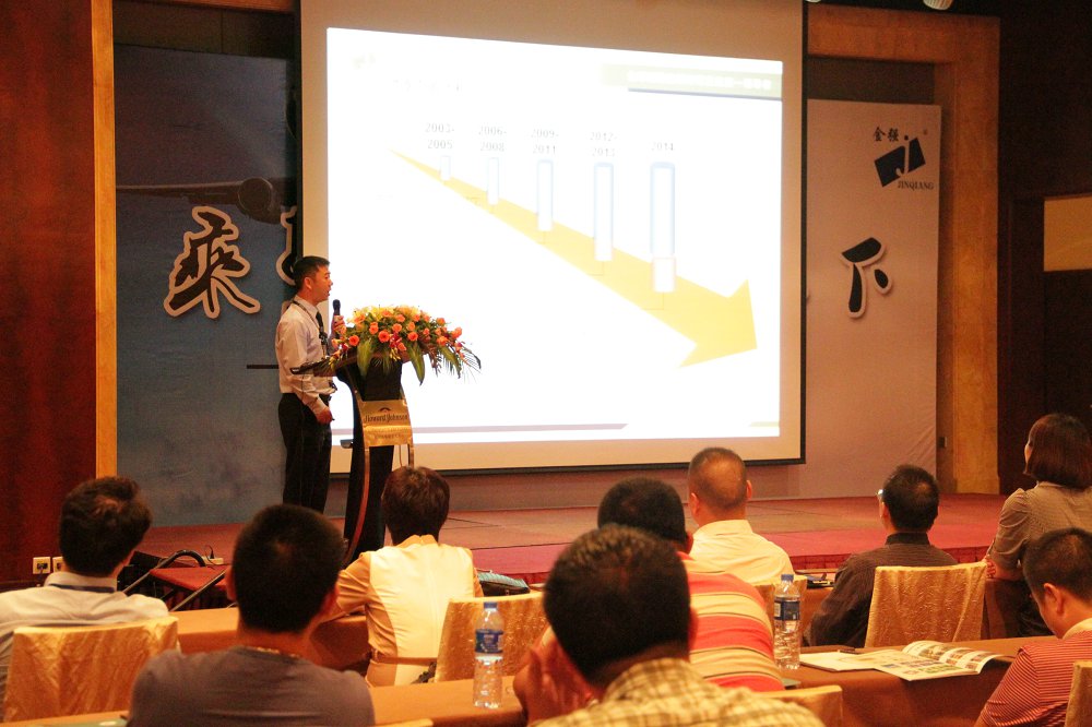在明確了金強的戰略目標后,金強營運中心黎副總對2014年金強全新的營銷政策進行了詳細的講解。2014年,為扶持金強經銷商,金強提出了極具成長性的“兩年百萬計劃”:金強將通過一個全新的“131工程”,即:1種優質產品,3駕品牌馬車,1個極具吸引力的促銷活動,在2年時間內,打造一支優秀、忠誠度高的經銷商隊伍,實現讓經銷商盈利百萬的目標。