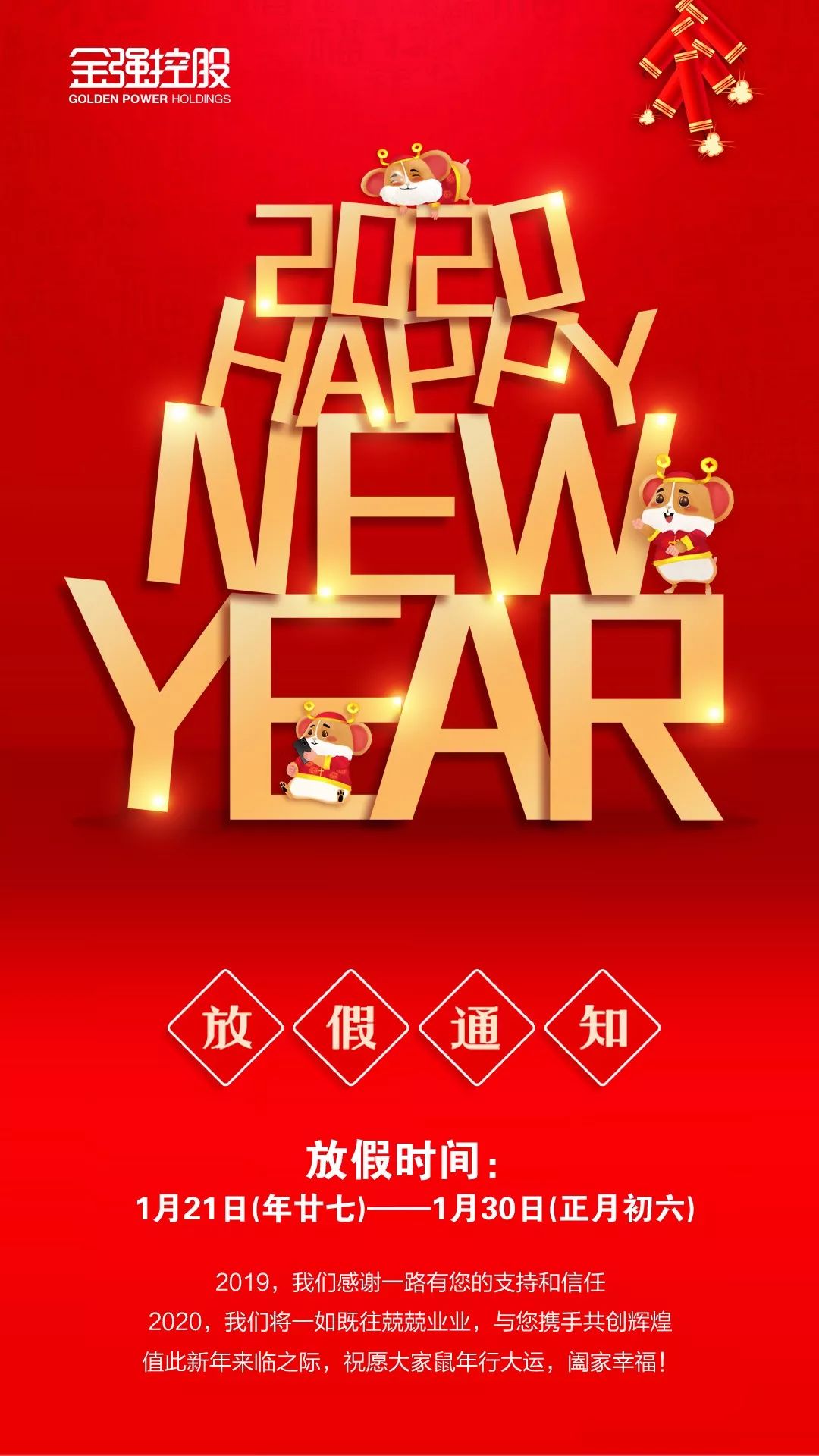 放假通知 | 金強控股集團預祝您新春快樂!